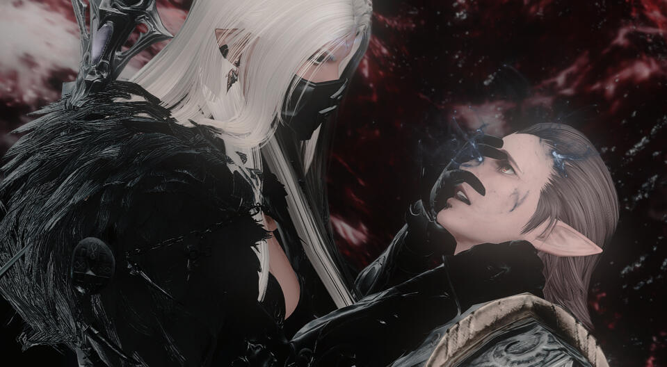 | marriage to dissolution to possession | Arielle would have never guessed that she would be betrothed to the man that almost put her to the sword during her trial-by-combat. after two cycles of growing closer and intimate, with their compassion growing vast due to their shared interest in combat and dubious justice, they became wedlocked. Arielle’s marriage to Khaen was once a union forged in love despite the societal stigma surrounding her mixed heritage. Khaen cherished Arielle, seeing beyond her nationality to the strength of her character. However, their bond began to fracture after Arielle suffered the devastating event of delivering a stillborn of their first child. Overwhelmed by grief and self-doubt, Khaen feared she could never help extend his family's bloodline, leading him to believe that their marriage might have been a mistake. | In the depths of their mourning amidst a patrol, Khaen became vulnerable to the seductive influence of a voidsent succubus, which promised him dark and taboo powers in exchange for his allegiance. Ensnared by this newfound strength, he returned to Arielle, exploiting her emotional state to coax her into accepting the void’s power as well. Under the influence of the succubus, he promised that together they could easily try for another child without any challenges, and that such power would elevate Arielle beyond the scrutiny of Ishgard. Desperate for hope and driven by her pain, Arielle reluctantly took the offer. | However, the pact with the void proved to be a graven mistake, unleashing unrest in their lives. As Khaen became increasingly more aggressive, he was consumed by the darkness, and Arielle found herself grappling with the corrupting influence of the void as well. Realizing the harm this path was inflicting on both of them, she resolved to sever her ties with the deeply void-possessed Khaen and sought help to rid herself of the insidious power before it completely enraptured her. Amid their shared tragedy, Arielle faced the harrowing choice: reclaim her autonomy and fight against the darkness or risk losing herself entirely to the void. right before her father made it to the secured borders that divided the Shroud and his homeland, he had received word of Arielle's predicament and organized a search-and-rescue party to bring her safely to Ul'dah and have the Ossuary mages eradicate the voidal essence that Khaen had tainted her with. |
